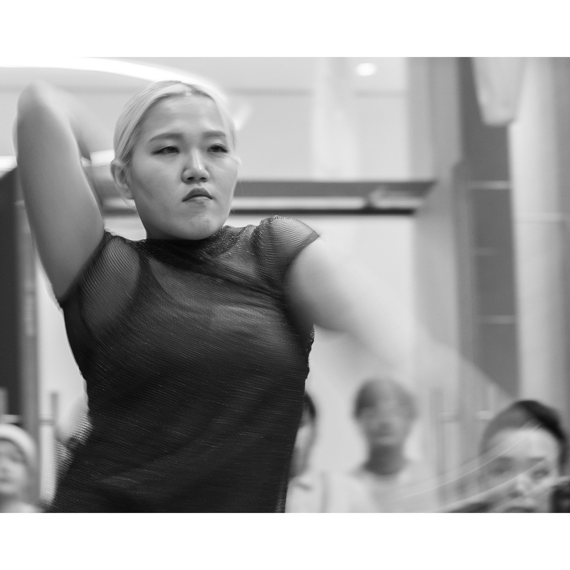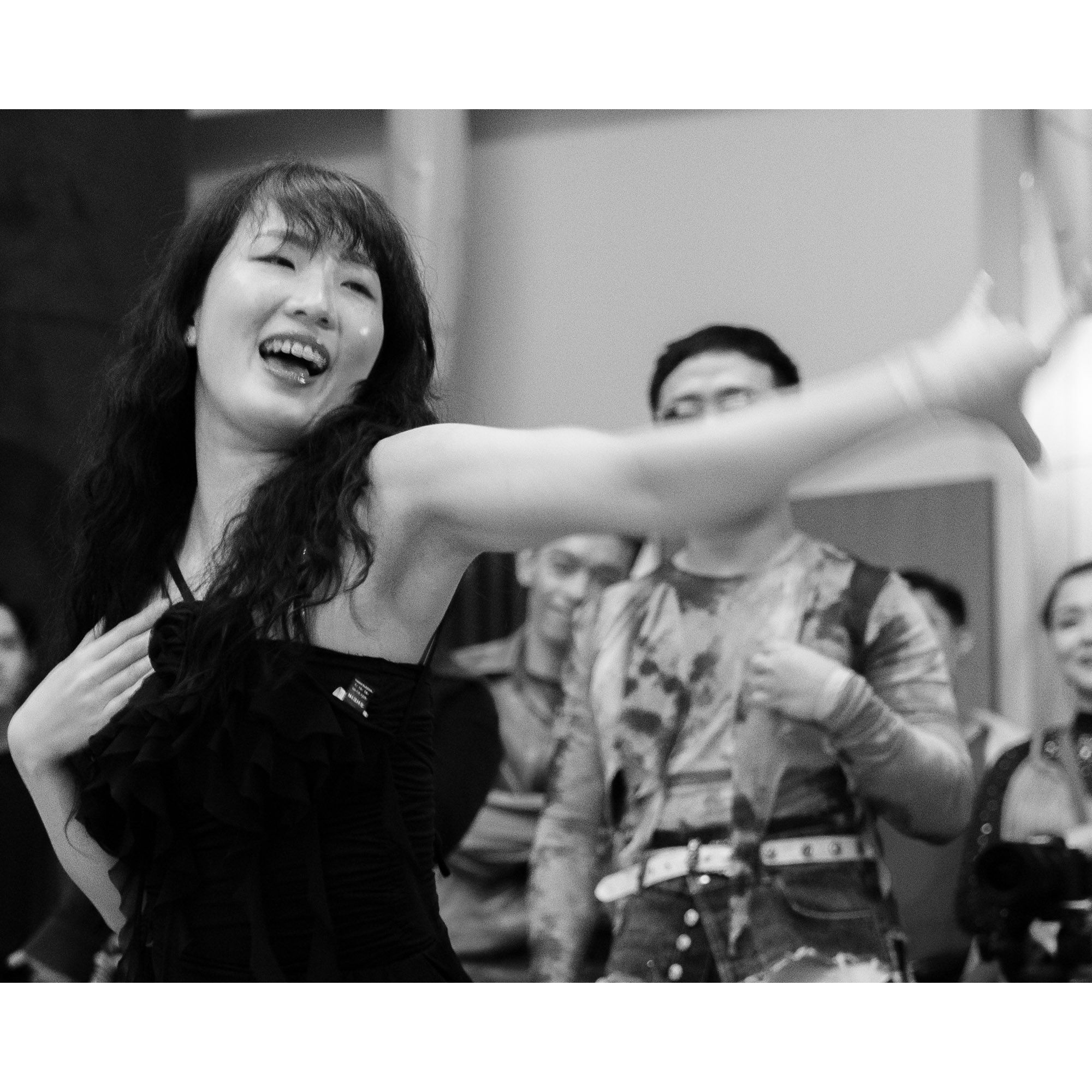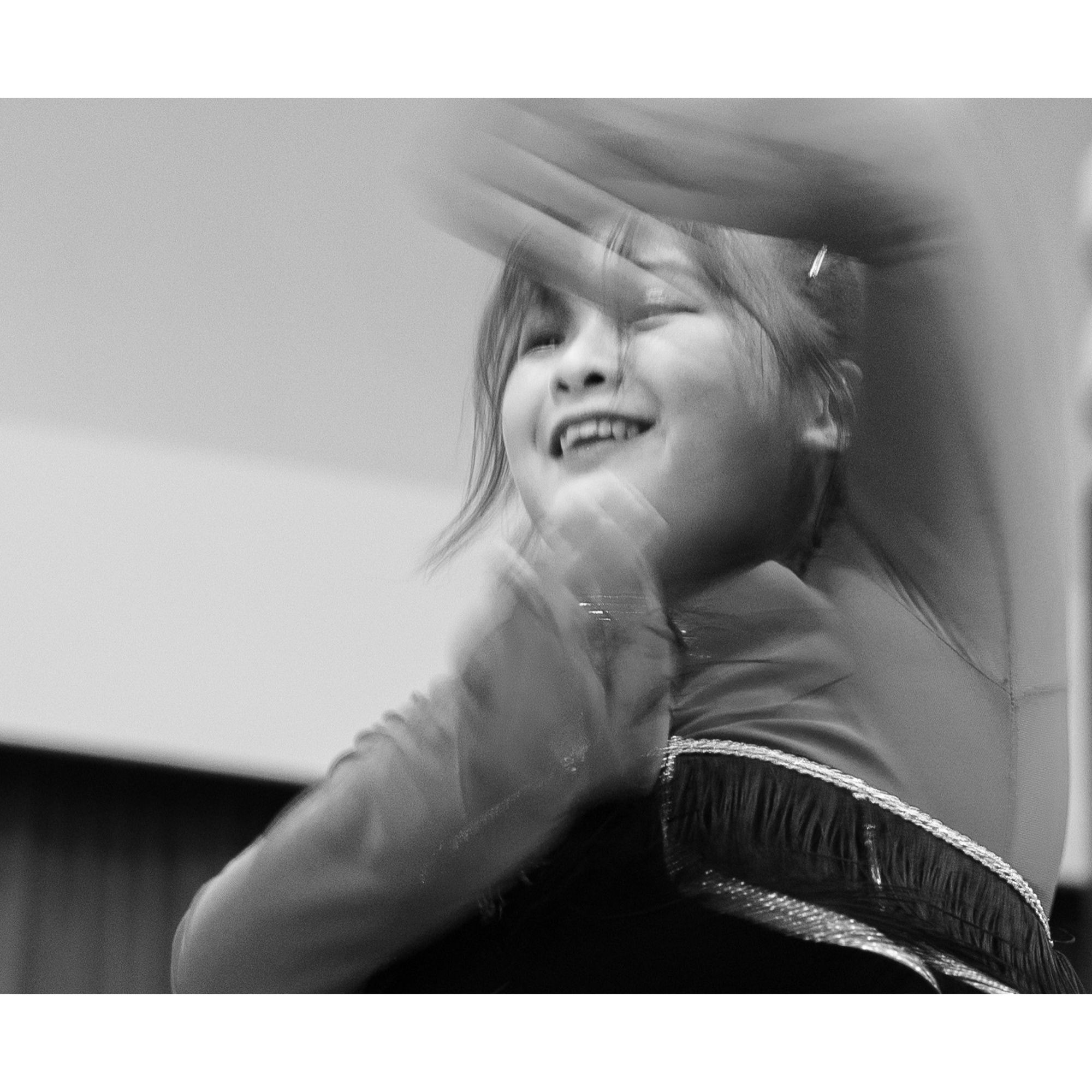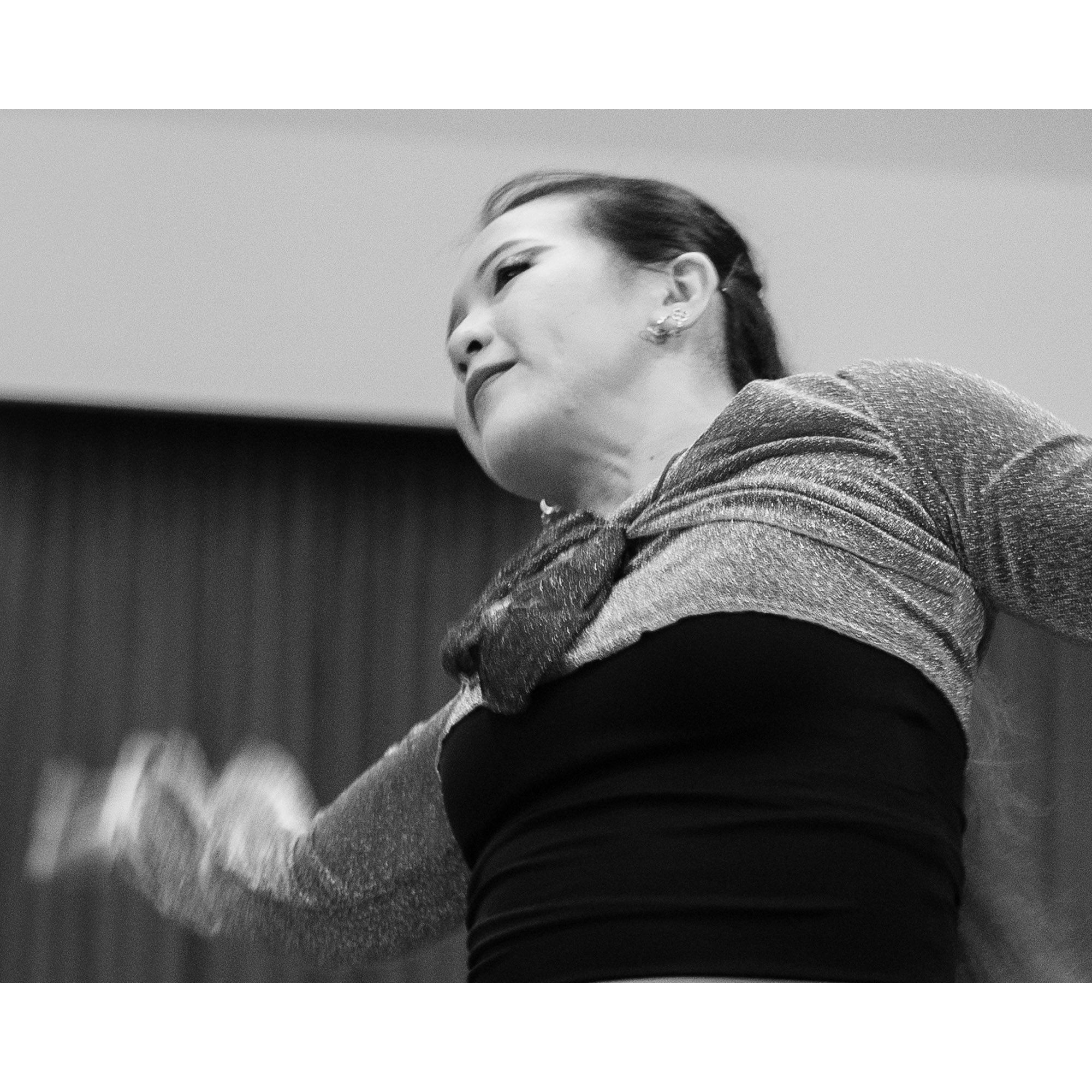 I used a slow shutter speed to capture the movement and did a close crop to isolate the dancer's face. Then converted the photos to monochrome to draw the attention to the emotions and movement.
