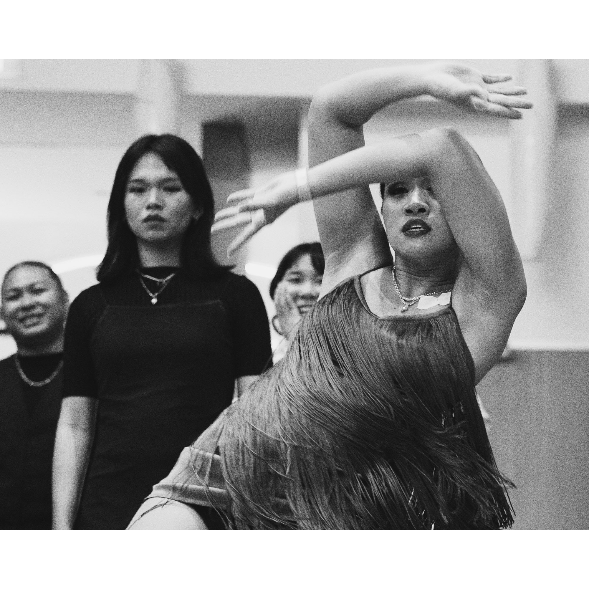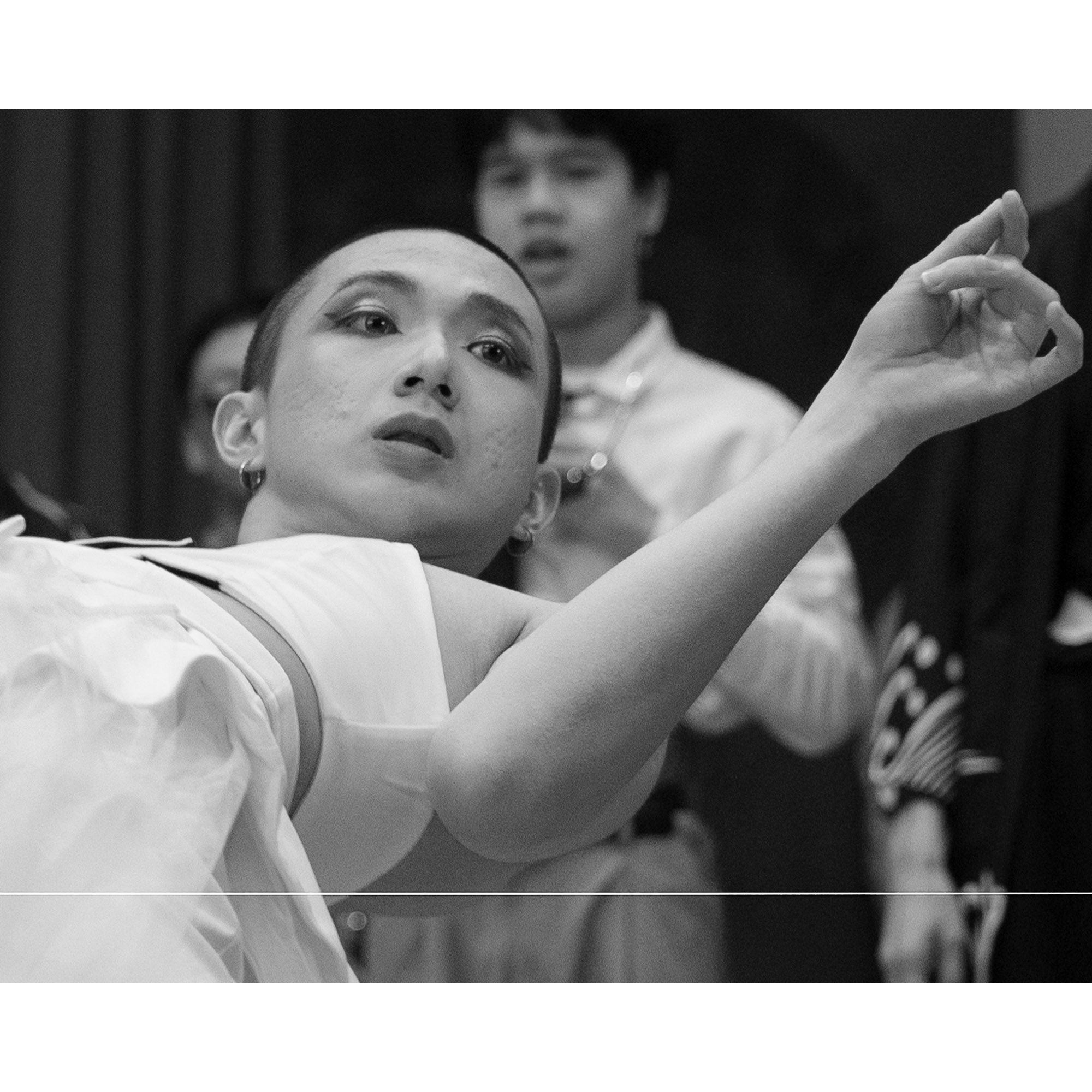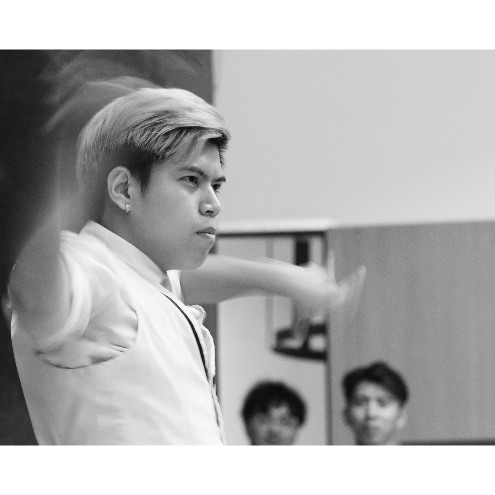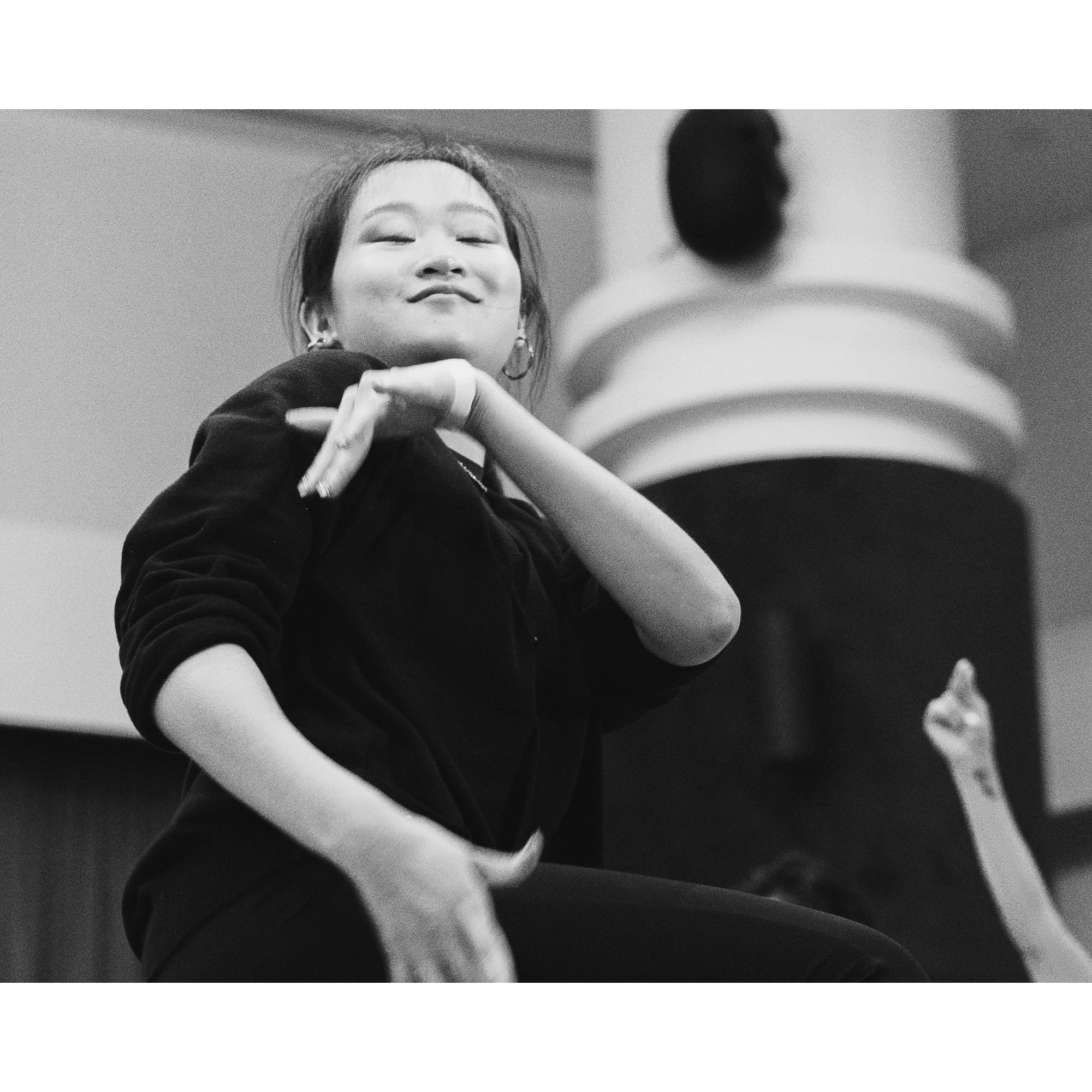 I used a slow shutter speed to capture the movement and did a close crop to isolate the dancer's face. Then converted the photos to monochrome to draw the attention to the emotions and movement.