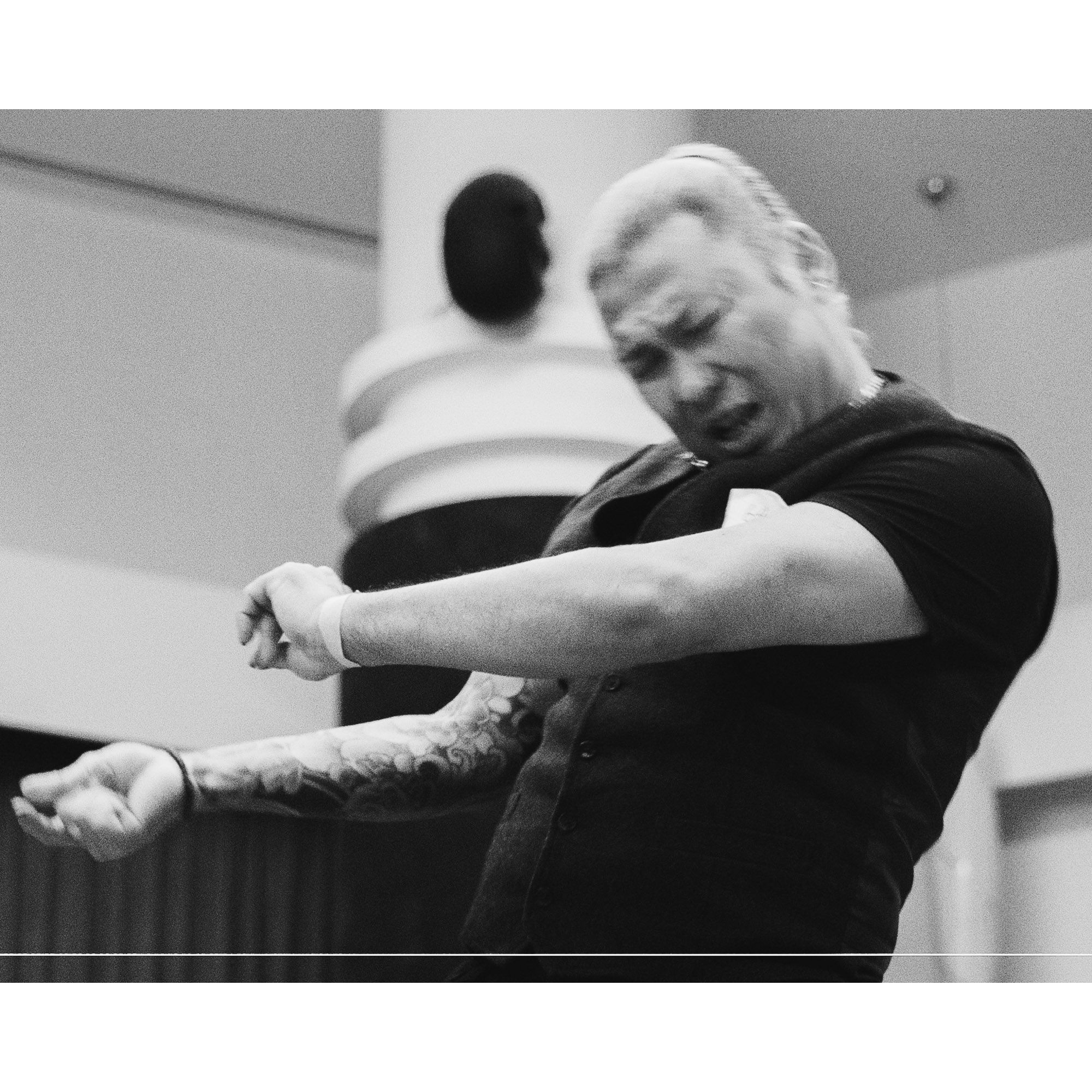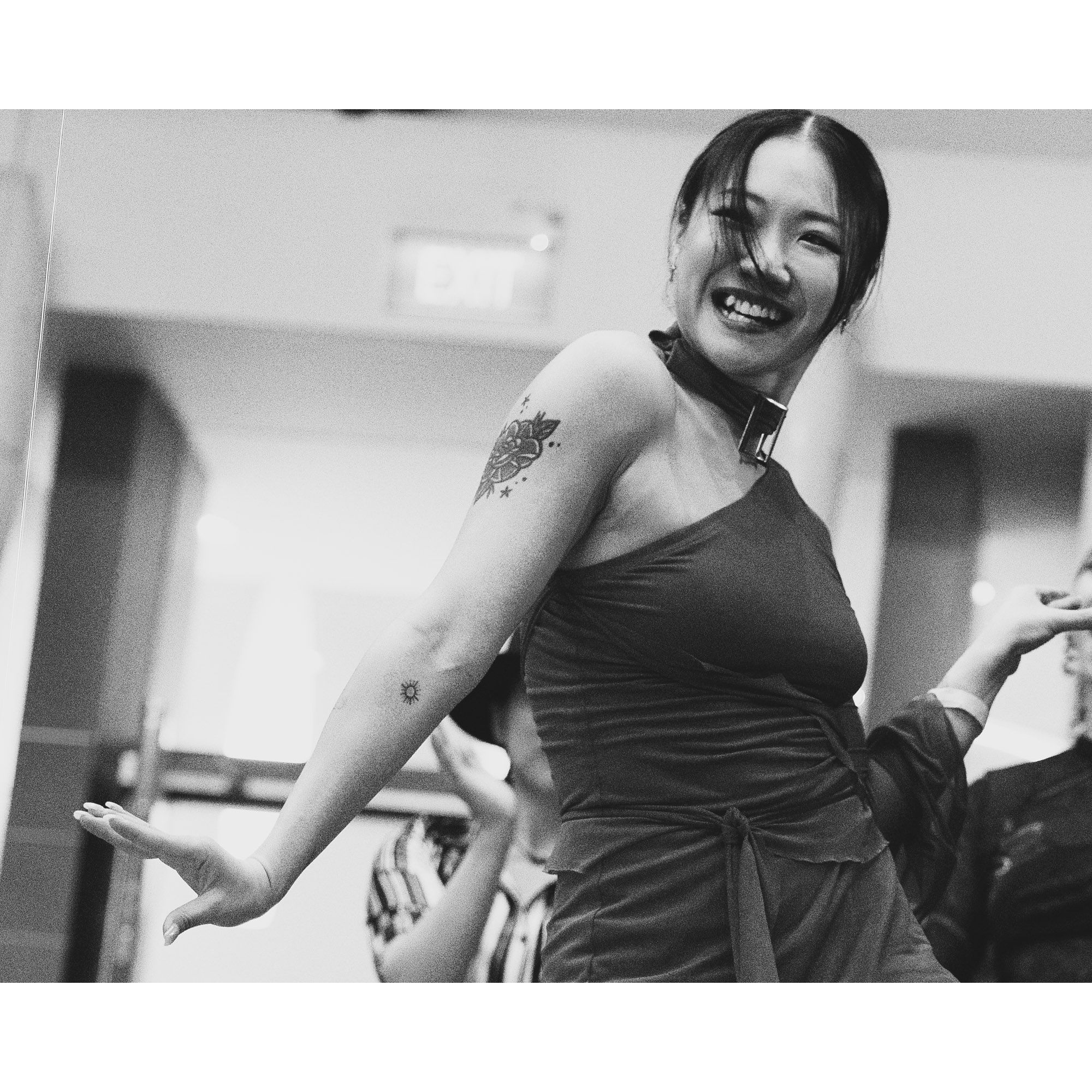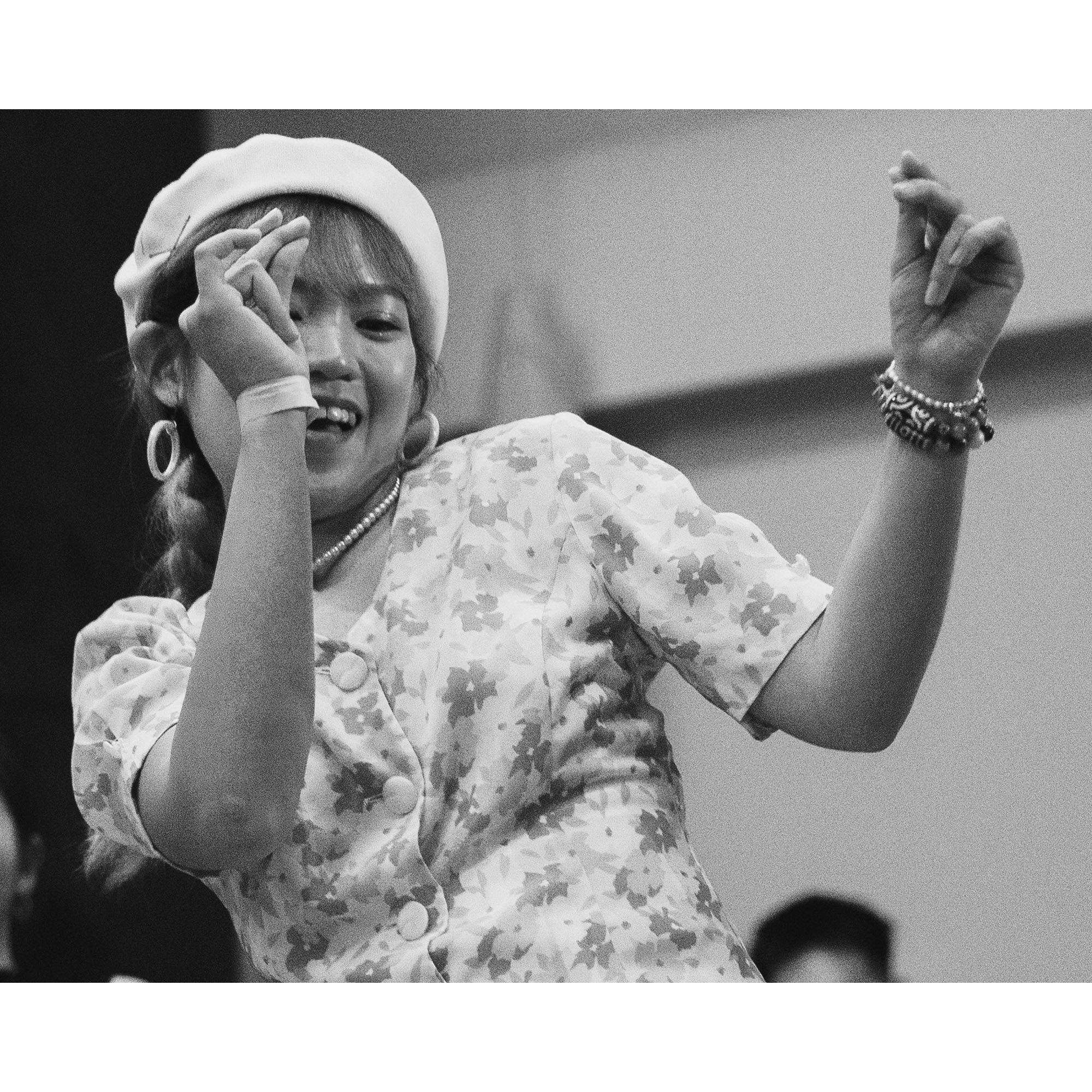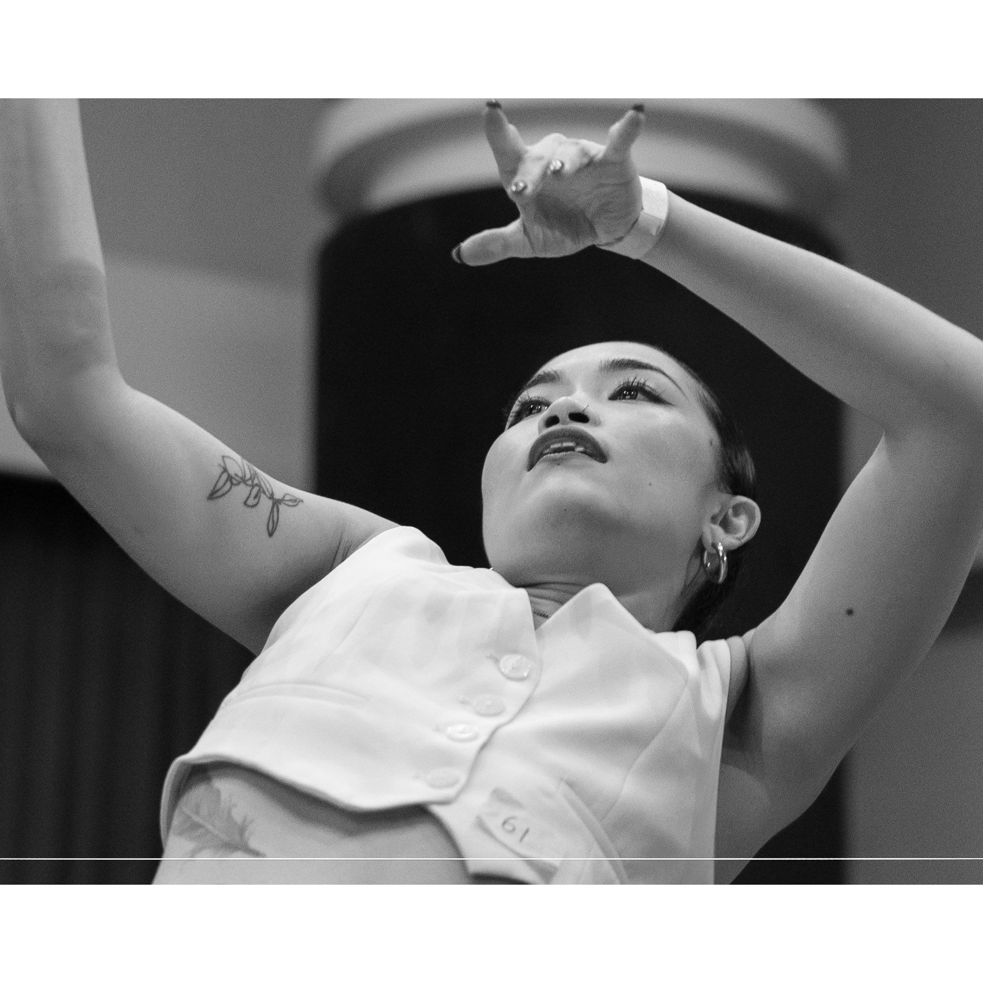 I used a slow shutter speed to capture the movement and did a close crop to isolate the dancer's face. Then converted the photos to monochrome to draw the attention to the emotions and movement.