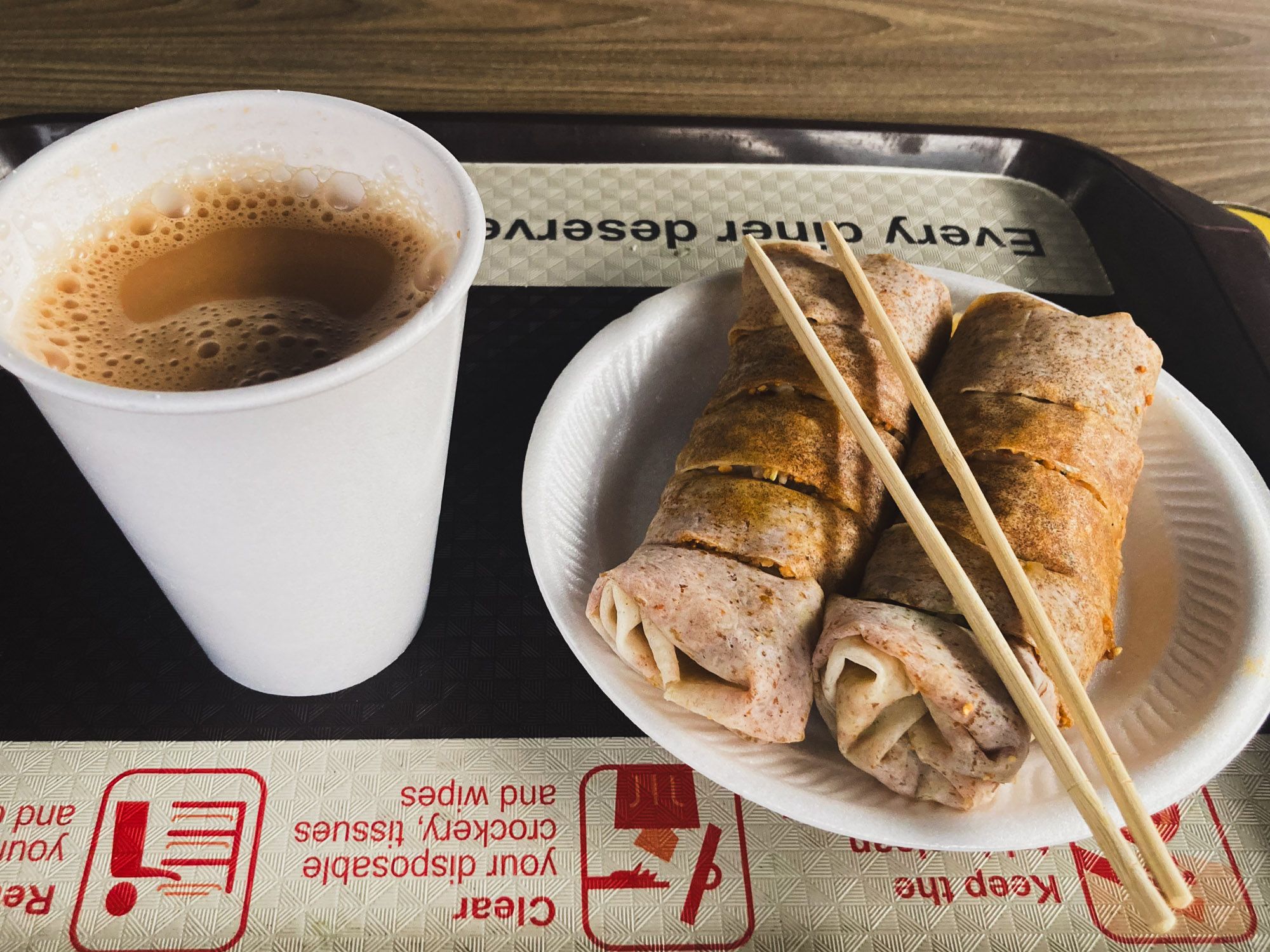 For the breakfast I had two Popiah and a tea (which was too sweet).