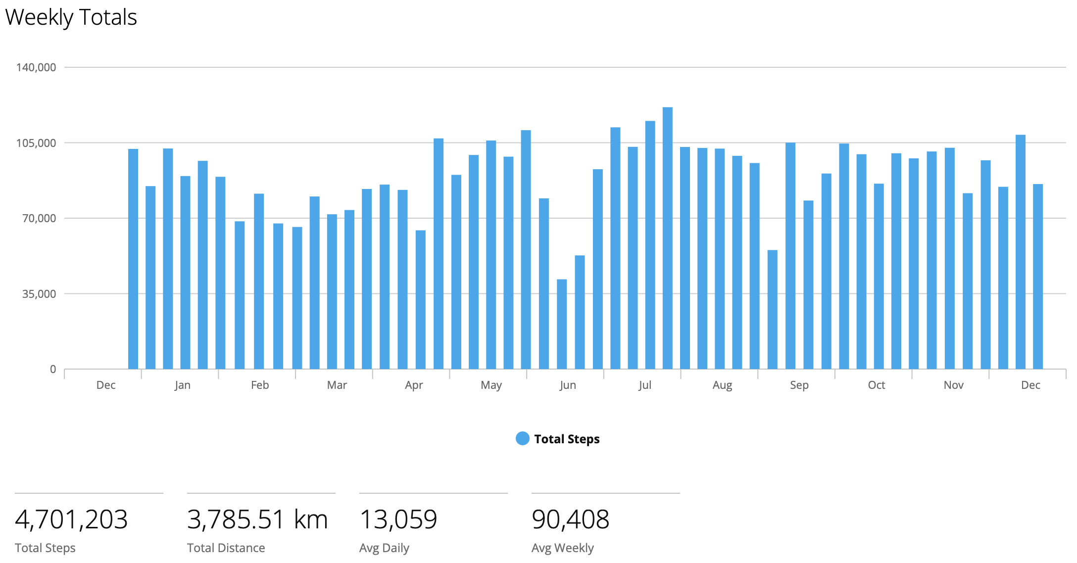 Along with beach volleyball I kept playing beach tennis few times a week (to the point of having to wear a knee brace), and doing yoga once a week. I stopped running, mainly because I didn't have energy after a weekend play. There was a time I played during the whole weekend. While my average step count dropped to 13,059 per day (from 14,123 in 2024), resting heart rate improved to 57 (from 63 in 2024). Meaning the beach workouts improved the cardio fitness. I also tried to form a habit to go to gym regularly, but couldn't. Something to work on next year.