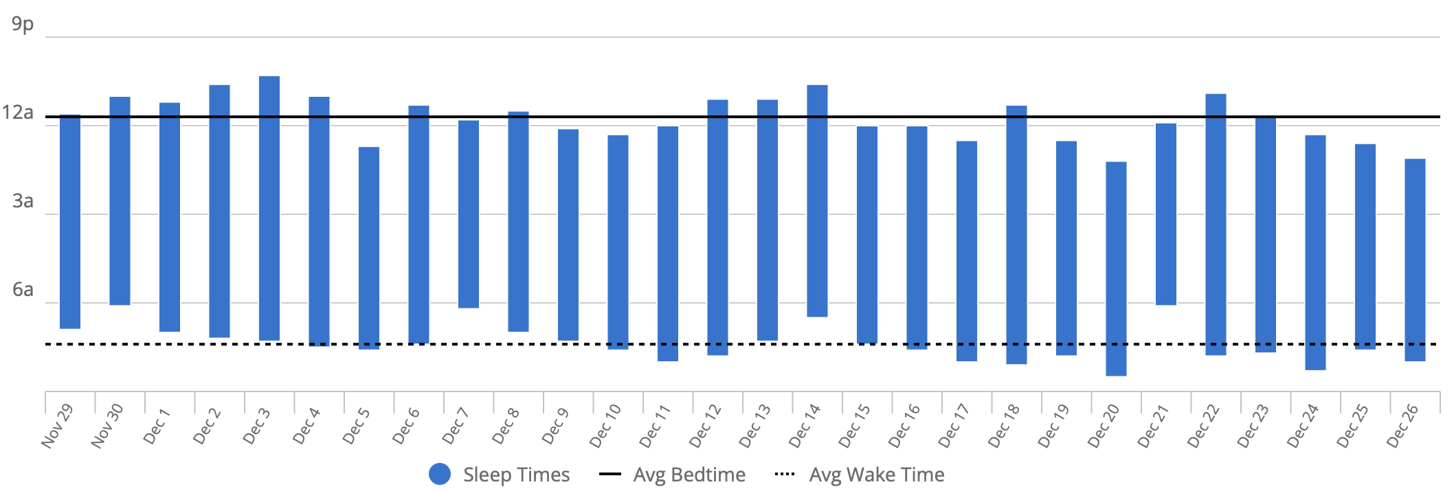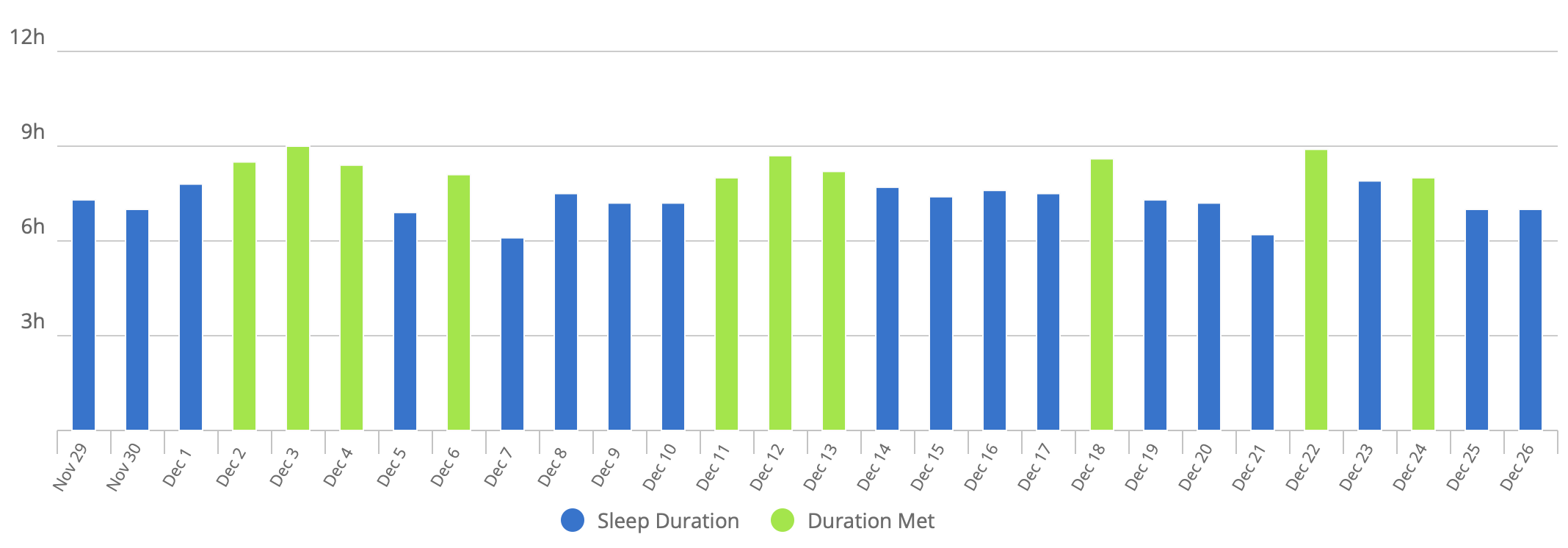My average sleep duration is 7h 45m (up from 7h19m on 2024) with 11:30pm - 7:30am average bedtime.